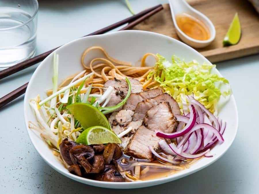 Pho – vietnamesisk suppe med mørkokt svinebog og bønnespirer